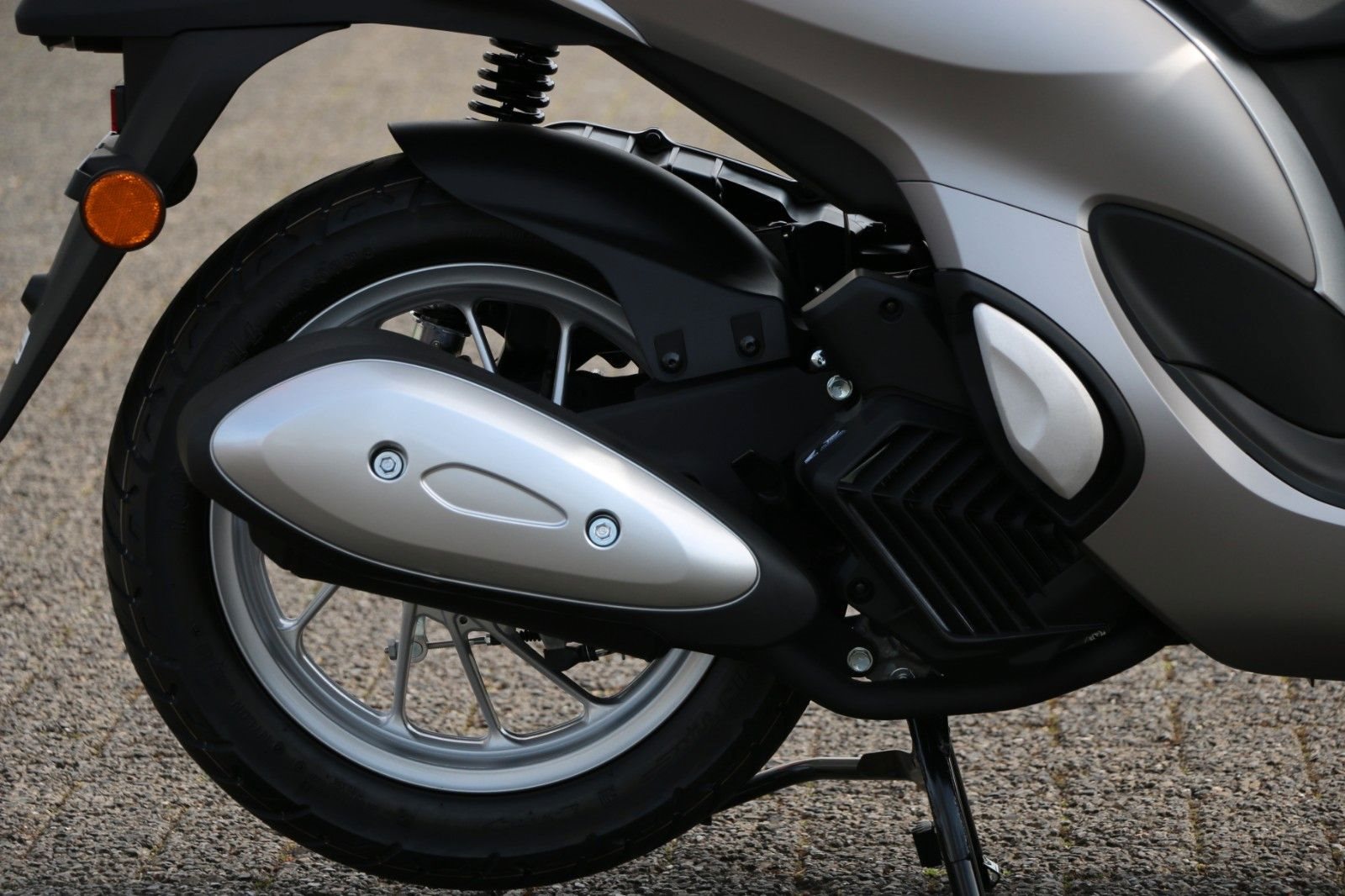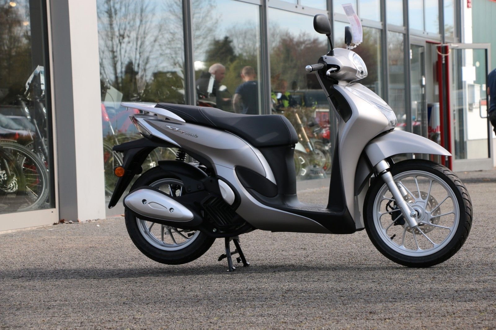 Die markanten Linien des SH Mode 125 machen Eindruck. Doch als Mitglied unserer SH-Familie zeichnet sich der Roller nicht nur durch elegantes Design, sondern auch durch ein hohes Maß an praktischer Funktionalität aus. Der große, flache Boden sorgt für mehr Beinfreiheit. Unter dem Sitz ist Platz für einen Integralhelm und ein praktisches Handschuhfach mit USB-Typ-C-Anschluss in der Verkleidung, damit Sie Ihr Smartphone während der Fahrt aufladen können. Das perfekt abgestimmte Fahrwerk sorgt für sichere, leichte Handhabung, die Räder aus Aluminium-Druckguss (16 Zoll vorn, 14 Zoll hinten) für eine angenehme Fahrt auf rauem Asphalt.